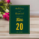 Este elegante número de mesa de boda verde y dorado es perfecto para un boda moderno. el diseño es sobrio y elegante, con una caligrafía dorada sobre un fondo verde.