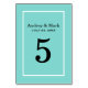 Cada tarjeta de número de tabla debe ser personalizada a través de Personalize it" y añadida individualmente al carrito de la compra. El diseño de tarjetas de dos caras con monograma boda presenta una moda y un diseño sofisticado en acua / pool / robin's egg blue, black and white.