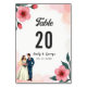 Este elegante número de mesa de boda floral acuático es perfecto para un boda moderno. El diseño romántico presenta un elegante marco floral acuático con un ilustracion de novia y novio y una caligrafía negra sobre un fondo blanco.