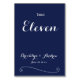 Elegantes números de tabla boda azul marino con texto blanco cambiable y gráficos decorativos