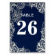 elegante playa náutica blanco encaje azul marino boda tarjeta de números de mesa.