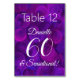 Elegante púrpura 60 y número de mesa de fiesta sensacional de cumpleaños Este es un número de mesa de arte púrpura especial y abstracto especial diseñado especialmente para tus amigos que cumplen 60 años y es sensacional! Personalice este número de tabla con su nombre. ¡Planifique a su fiesta con más suministros de nuestra tienda para fiestas de cumpleaños! ¡A tu amigo o familia le encantará una elegante fiesta de cumpleaños con temática púrpura! Recuerde cambiar el número de tabla y ordenar cada uno por separado.