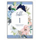 Elegante número de mesa con magníficos detalles de caligrafía a mano, azul y rosa floral, y fondo azul falso de Relieve metalizado. Parte de nuestra colección "Quinceañera floral azul y rosa con agate y Relieve metalizado azul" con una variedad de productos de coordinación disponibles. Por favor, realice un pedido individual para "cada" número de tabla que necesite para su evento. (es decir, para tres tablas se necesitarían tres pedidos diferentes, un pedido sin número 1, otro pedido sin número 2 y otro pedido sin número 3). Diseño con flores acuáticas en una variedad de tonos marinos, azul real, azul polvoriento, rosa, oro rosa y blanco.