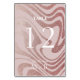 Un elegante boda de fondo de oro rosa líquido de fondo número 3.5x5pulgadas con un fondo dorado caprichoso con números de tabla negrita y monogramas de pareja.