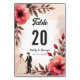 Este elegante número de mesa de boda floral acuático es perfecto para un boda moderno. El diseño romántico presenta un elegante marco floral acuático con un ilustracion de novia y novio y una caligrafía negra sobre un fondo blanco.