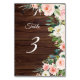 Tarjeta De Mesa Elegante Rubor Flores rosas Madera Rústica