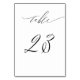 Estas elegantes tarjetas de números de tabla presentan un moderno guión de caligrafía con letras en negro que dice "Tabla 23" en un simple fondo blanco. Por favor, revisa nuestra tienda I Love Weddingz para más tarjetas de número de tabla en este juego. ¡Mis mejores deseos para su boda y matrimonio! Diseñado por Susan Coffey.