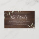 Las hojas de color acuático moderno de la vegetación botánica sobre fondo de grano de madera oscura, con escritura moderna y nombres de pareja en la parte posterior, simple y elegante, grandes detalles bodas insertan tarjetas para la boda rústica botánica en otoño e invierno. Vea todas las piezas coincidentes de la colección.