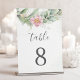 Bellos números de mesa de boda con eucalipto en acuarela y hojas doradas. Excelente opción para bodas de primavera y verano.