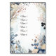 El diseño presenta una disposición suave y etérea de tonos azules en polvo y suaves de tierra con delicados follajes, bayas y flores que rodean los bordes. El marco está decorado con hojas de acuarela, flores de algodón y bayas oscuras, lo que le confiere un ambiente rústico y elegante. El área central se deja en blanco, ideal para los detalles de texto o evento, rodeado de formas orgánicas que evocan un ambiente sereno y otoñal. Este sofisticado motivo inspirado en la naturaleza funcionaría muy bien para una colección boda con un ambiente romántico y atemporal.