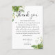 Un elegante boda botánico de eucalipto verde gracias tarjeta de recepción, personalizada con un mensaje especial y los nombres de la novia y del novio. Diseñado por Thisisnotme©
