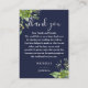 Un elegante boda azul marino y verde eucalipto gracias a la tarjeta de recepción, personalizada con un mensaje especial y los nombres de la novia y del novio. Diseñado por Thisisnotme©