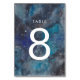 Estas tarjetas de número de mesa con tema espacial harán que todos estén listos para despegar y divertirse. El hermoso fondo de galaxia con estrellas y planetas es una forma hermosa de decorar para tu próxima fiesta. Parte de una colección de Parcel Studios.