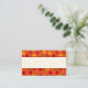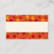 La caída deja en blanco las tarjetas de lugar. Las pequeñas tarjetas planas tienen un diseño naranja brillante con un fondo de hojas rojas, amarillas, naranjas y verdes. Escribir a mano el nombre de un invitado en el panel sólido, en blanco roto. Incluir un número de tabla si se utiliza como tarjetas de acompañamiento.