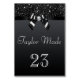 Elegante personalizado personalizó imágenes en blanco y negro y arcos con diamantes de imitación de imagen impresos, joyas de diamantes y cintas imágenes de boda tarjetas de número de tabla. Glamorosas y sofisticadas tarjetas en blanco y negro para bodas. NOTA:- Todas las tarjetas / invitaciones en Zazzle tienen imágenes impresas planas. No son arcos, cintas ni secuencias reales.