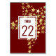Elegante y elegante personalizable FESTIVE STARS número de mesas en rojo, color falso dorado y blanco, con BENDICIONES FESTIVAS en sutiles patrones de fondo de baldosas y falsas estrellas de oro. Parte de la colección FESTIVE STARS. También disponible en rojo y falso tema de color dorado.