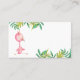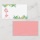 Tarjeta de lugar linda con una ilustración de un flamenco y algunas hojas. Ideal para tu baby shower o fiesta junto a la piscina. Ilustrado y diseñado por Patricia Alvarez.