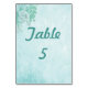 Bonita tarjeta de mesa floral azul boda, ambos lados de esta tarjeta tienen un fondo de pergamino floral azul, texto personalizado mostrando el número de la mesa en el personalizar azul, ¡el suyo de hoy! Art.