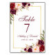 Watercolor Floral Burgundy Marsala Gold Boda Tarjeta de mesa