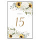 Tarjeta de mesa Boda Floral Elegante de Hydrangea Blanca. Hidrangea Blanca Romántica y Bodas de girasoles Número de tabla