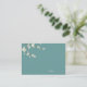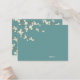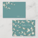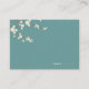 Una ilustración original de hermosas flores de cerezo blancas crema marfil o sakura flores de primavera con ramas de color marrón claro sobre un fondo verde turquesa / verde azulado. Esta es una tarjeta de asiento de invitado / tarjeta de lugar de boda moderna.