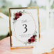 Tarjeta De Mesa Flores de Borgoña, Flores Rojas, Boho, Números de