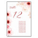 Esta tarjeta de número de mesa de asignación de asientos de boda cuenta con flores de cerezo pintadas con acuarela sobre un fondo blanco. Con cuadros de texto para agregar una lista de nombres de invitados.