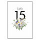 Un hermoso ramo de flores de verano se sienta sobre sus números de mesa personalizados en elegante texto. Diseñado por Thisisnotme©