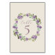 Tarjeta De Mesa Flores moradas Boda de caligrafía romántica