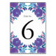 Tarjeta De Mesa Flores moradas Número de tabla pintado a mano
