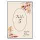 Hermosas flores secas, hierba de pampas, hojas de palma, trigo, hojas secas y bayas tarjeta de número de mesa.