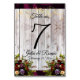 Este diseño tiene una elegancia rústica, con una temática sencilla. Buques de flores silvestres con hermosos colores cálidos de verano y luces brillantes con cinta morada en un lugar de fondo de madera de pino para el número de la mesa, el nombre de la pareja y la fecha boda. Diseñado para coordinar con la colección Rustic Wildflowers & Ribbon. Para cambiar detalles, haga clic en "Personalizar". Para mover el texto o cambiar el tamaño del texto, el tipo de letra o el color, haga clic en "Haga clic en el personalizar"