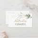 Tarjeta de lugar plana elegante con una ilustración de follaje verde y dorado en estilo de acuarela. Debido a este tipo de tarjeta, no es posible incluir nombres individuales. En este diseño, puede eliminar el nombre de muestra (tarjeta en blanco). Luego, tendrá que escribir los nombres individuales a mano.