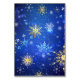 Tarjeta De Mesa Fondo azul XMAS con copos de nieve dorados