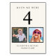 Diviértase con los números de la mesa de la recepción de bodas con estas tarjetas crema luminosas con cada número de mesa correspondiente a una foto de la novia y el novio a la misma edad (por ejemplo, para la Tabla 4, personalice el número de la mesa con "4" y añada fotos de la novia y del novio cuando tengan 4 años). Si tiene un gran número de tablas, puede dividirlas a la mitad y tener la primera mitad con un color de fondo o de texto y la segunda mitad con un color de fondo o de texto diferente. Por ejemplo, si tiene 30 tablas, podría tener un número de tabla blanco 1 -15 y números de tabla negro 1-15 (e indicar el color de número de tabla apropiado en las tarjetas de lugar).