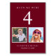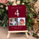 Diviértete con la decoración de la recepción de tu boda con estas tarjetas de números rojos burdeos donde cada número de mesa corresponde a fotos de la novia y del novio a la misma edad. Por ejemplo, en el cuadro 4, personalice el número de la tabla con "4" y añada fotos de la novia y el novio cuando tengan 4 años.