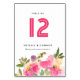 Elementos: Flores acuáticas vibrantes acentuadas por fuentes divertidas y modernas. Presenta nombres primarios y nombres de pareja. Colores: Violeta, ciruela, fucsia, verde, amarillo, mariposa, rubor. Temas: Diversión, moderno, caprichoso, vibrante, primavera, verano, atemporal, romántico, jardín. Colección: divertida colección de Bodas florales de violeta violeta fucsia tipo de producto: tarjeta de tabla