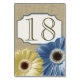 Tarjeta De Mesa Gerbera Daisy número azul y amarillo