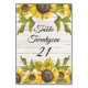 Rústico Weathered White Wood novios y apellidos de novio, girasoles de color amarillo campestre números de tabla