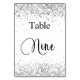 Tarjeta De Mesa Glitter blanco plateado caligrafía mesa nueve 9