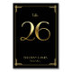 Gran Gatsby Art Deco boda número de tabla tarjetas con número dorado 26 y texto cambiable, donde puedes añadir tus nombres y fecha boda, impreso en fondo negro