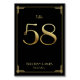 Gran Gatsby Art Deco boda número de tabla tarjetas con número dorado 58 y texto cambiable, donde puedes añadir tus nombres y fecha boda, impreso en fondo negro