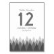 Estas tarjetas de número de mesa son perfectas para cualquier pareja que planee una celebración rústica de bodas de bosques. El diseño presenta una amplia gama de bosques oscuros en tonos grises sobre un fondo blanco con una redacción editable en color. El diseño sencillo puede ser personalizado para su evento especial y será el número de mesa perfecto para cualquier fiesta de temática rústica, incluyendo duchas de novias, compromisos, duchas de bodas, fiestas de cumpleaños y mucho, mucho más.