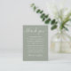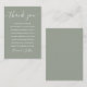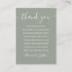Una elegante tarjeta de agradecimiento de recepción de boda. Personalizada con su mensaje especial de agradecimiento en tipografía elegante sobre un fondo de salvia plateada. Puede personalizar el fondo con el color de tema de boda de su preferencia. Un agradecimiento especial para sus invitados. Diseñado por Thisisnotme©