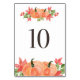 Mesa 10. Tarjeta de números de mesa festivos con ilustraciones en acuarela de calabazas y hojas de arce. Este número de mesa de calabaza es perfecto para bodas de Acción de Gracias y otoño, graduación, baby showers, despedidas de soltera y otros eventos.