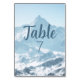 Este hermoso número de mesa de boda de montaña muestra una poderosa fotografía de montañas nevadas en invierno. Personalizar en escritura azul sobre las nevadas colinas. Decoración fotográfica perfecta para un boda que hace frío.