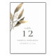 Tarjeta de número de mesa de hoja de eucalipto dorada y marrón rústica acuarela con semillas de nuez de goma. Personalice el texto en la tarjeta para adaptarlo a su ocasión.