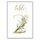 Tarjeta de número de mesa hermosa con un motivo botánico - una ilustración de acuarela de hojas verdes y doradas. Mesa 2. Por favor, revise todos los números disponibles