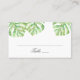 Tarjeta De Mesa Hojas verdes exóticas. Boda tropical de verano