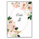 Hermosas hortensias rosadas, tulipanes primaverales blancos y ramos de cosmos rosados con toques de lámina dorada. Lindas tarjetas de mesa para tu día especial.
